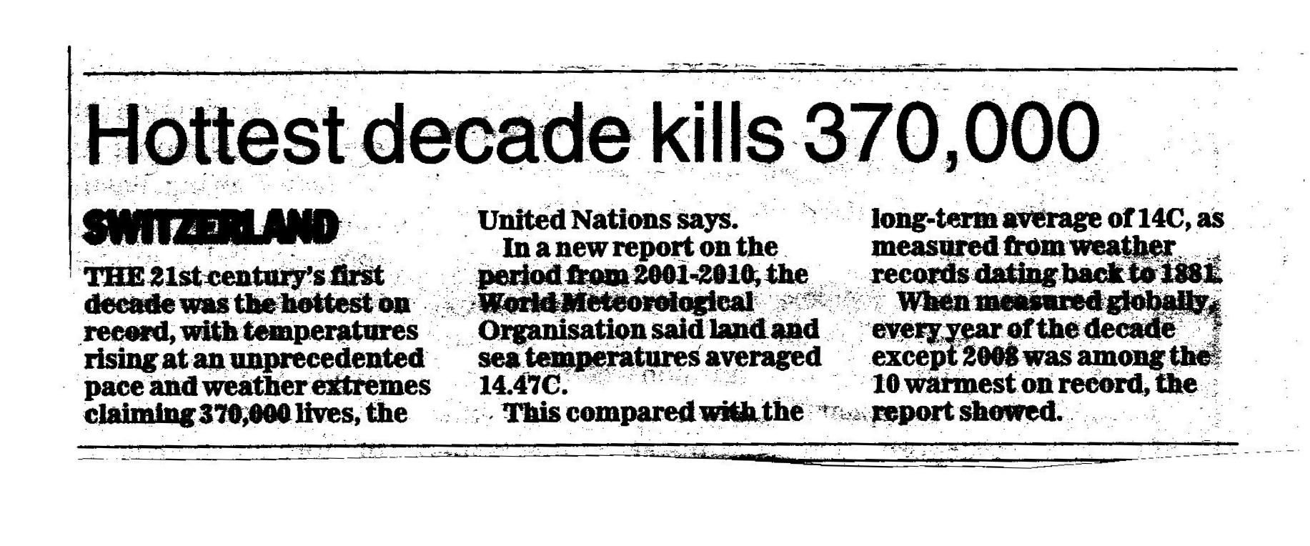 My searching so far to offer a counter to what I believe is more blatant misinformation, led me here and will do very well as a start. Just had a hiccup thought that they meant “hottest decade on record” for the 21st Century and that would indeed be true.